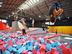 該區域是蹦床公園里最基礎的項目,如果覺得自由彈跳的挑戰性不夠?那搭上凸臺,飛身一躍,增加更多的難度,也可以當做跑酷障礙區,適合5-60歲人群,3歲以下小朋友需要家長陪同。