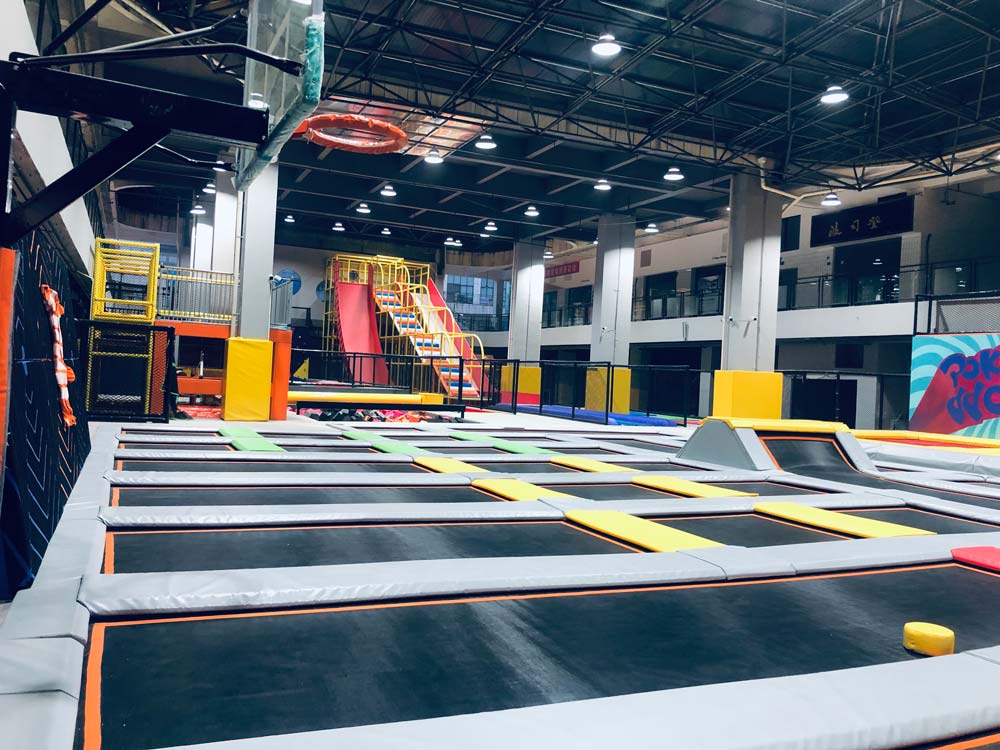 綜合型蹦床樂園一般可以設計自由彈跳區、攀巖海綿池區、忍者空間、專業蹦床加踢墻球區、花式灌籃區、滑索、淘氣堡區、魔鬼滑梯等區域,場地面積建議600-2000平米或以上,這樣可以讓玩家的體驗感達到最佳。