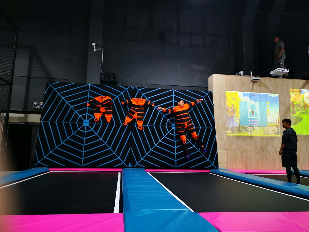 是一款可以貼在墻上的娛樂項目,穿上特制的衣服,在蹦床上起跳,縱身一躍,貼在軟體的魔術墻面上,然后緩緩掉下,猶如美國大片中蜘蛛俠一樣,非常刺激好玩。