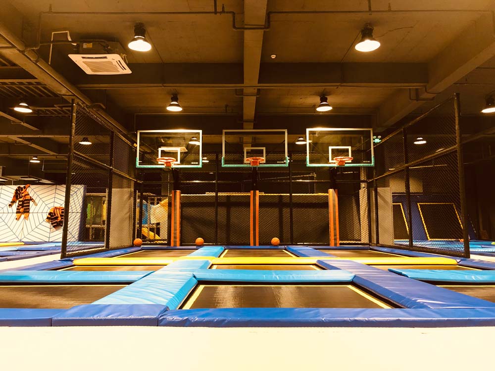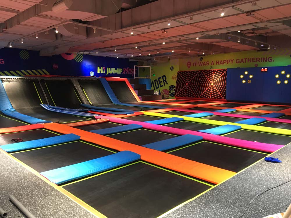 互動蹦床樂園可以說是一個占地面積比較大的項目,可以包含的項目很多,自由彈跳區、躲避球區、專業蹦床區、跑墻區、花式灌籃區、對抗球室、忍者闖關區、攀巖+海綿池區、蜘蛛墻區、足球區等這些都可以設計在互動蹦床樂園里,就連最近新推出的、非?;馃岬捻椖浚夯鹕脚蕩r、魔鬼滑梯、旱雪、七彩滑草也可以,只有您場地足夠高。